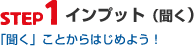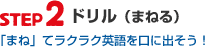 ステップ1でインプットされた単語や文を口に出していきます。何度もまねしてみることで英語の正しい「リズム」や単語・文をしっかり覚えていきます。 |